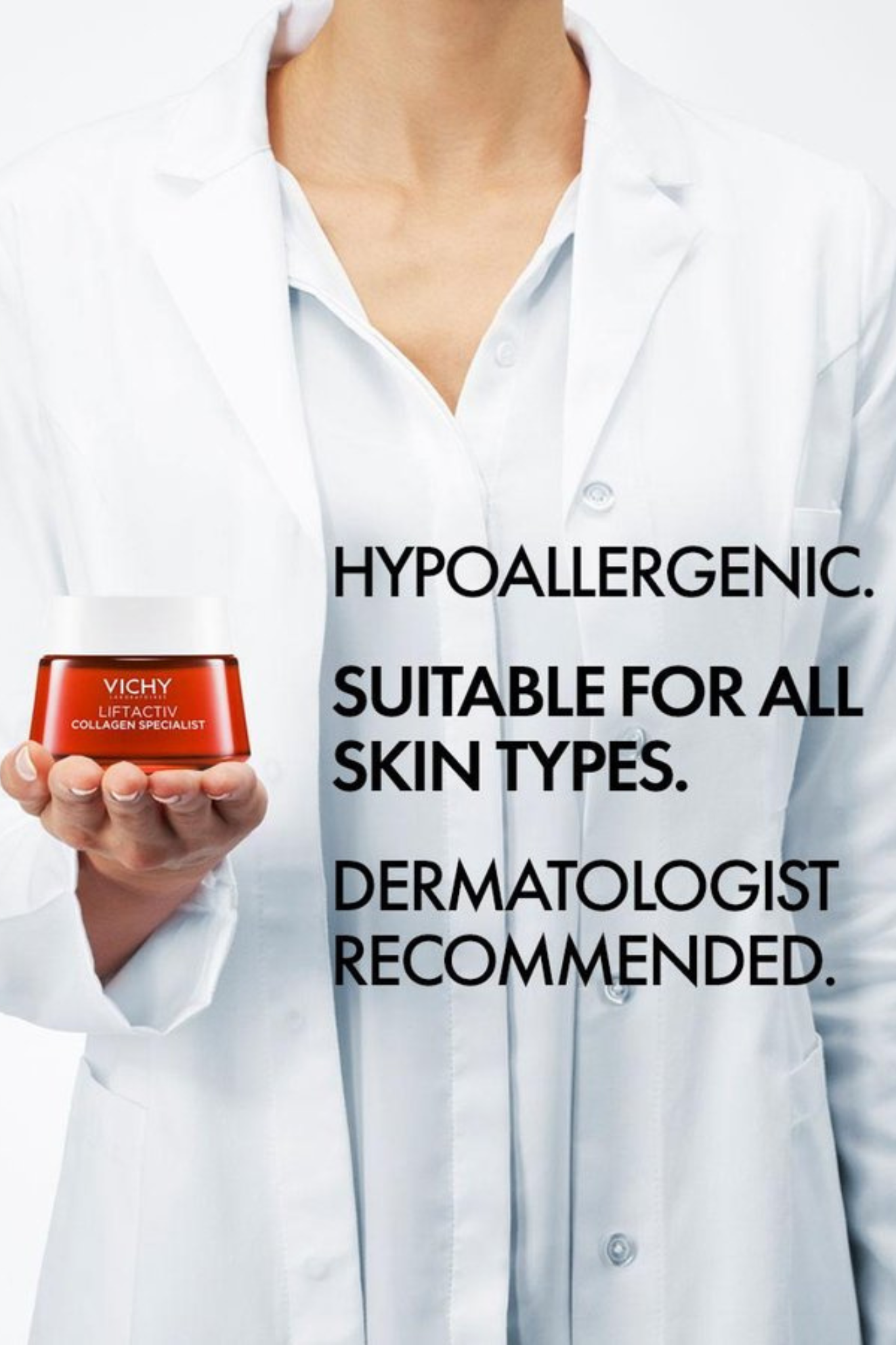 Liftactiv Collagen Specialist combines powerful natural-origin dermatological ingredients to help your skin progressively combat signs of collagen loss. Its powder-like, enveloping texture delivers instant lift, comfort, and a rejuvenated appearance.